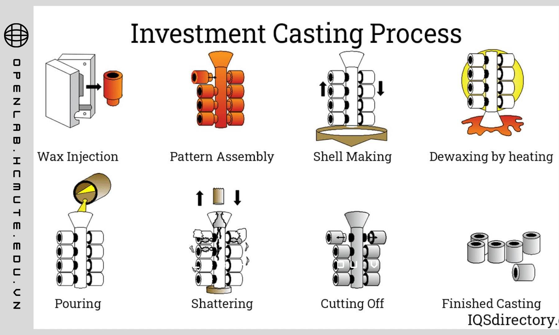 Trong khi đúc truyền thống dùng khuôn cát hoặc khuôn thạch cao, đúc mẫu chảy sử dụng mẫu sáp – khuôn gốm – nung chảy – rót kim loại.